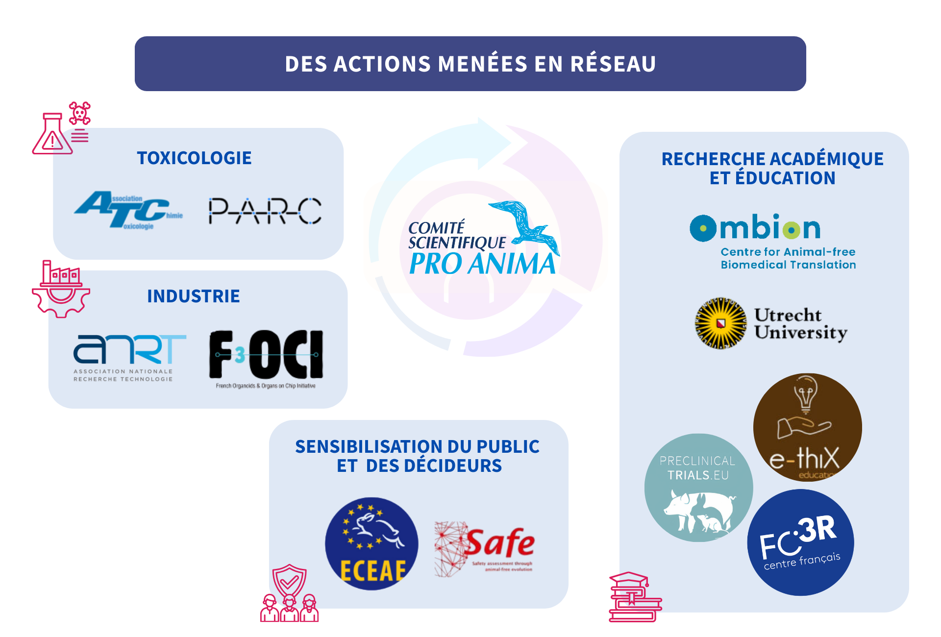 Face aux défaillances et limites du modèle animal, le Comité a pour objectif de promouvoir la sécurité sanitaire de l’homme par des substances chimiques mieux testées / plus fiables pour la santé humaine, plus protectrices pour l’environnement et sans recours aux animaux.