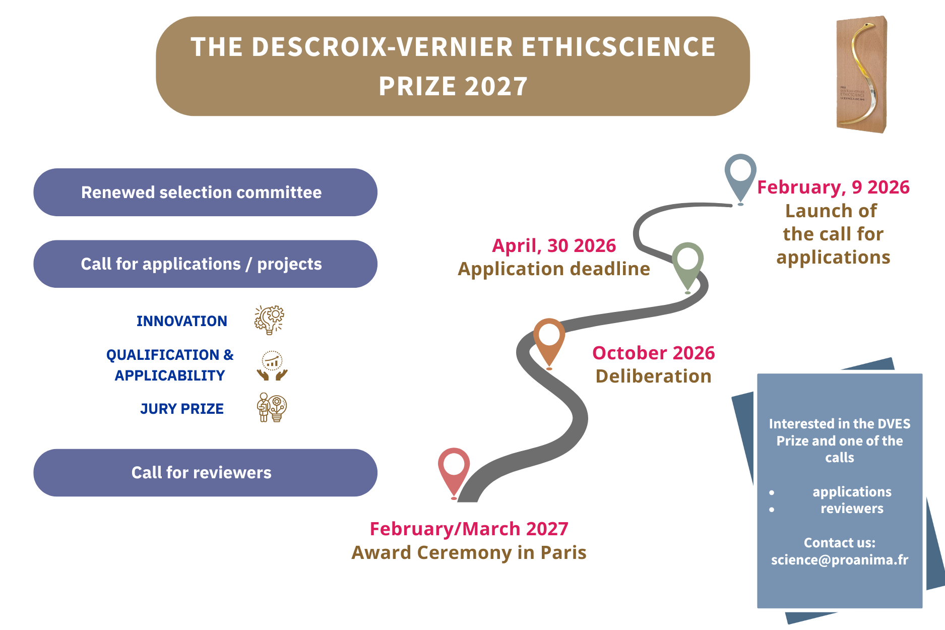 Created in 2013 by the Pro Anima Scientific Committee, the EthicScience Prize became the Descroix-Vernier EthicScience (DVES) Prize in 2023, marking the convergence of the objectives and values of Pro Anima and the Fondation Descroix-Vernier.