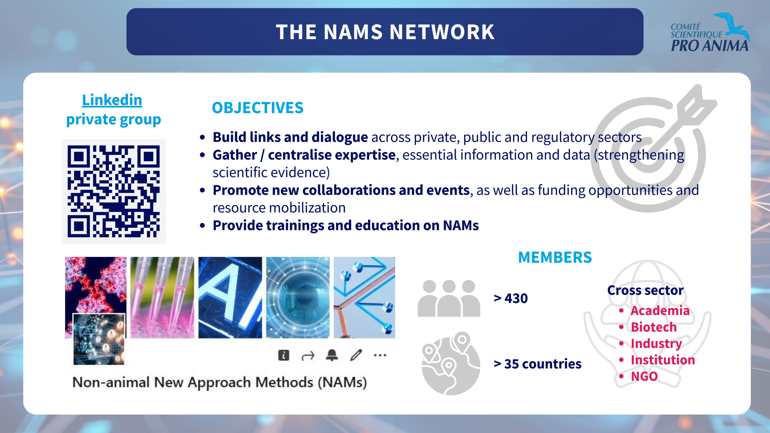 With more than 430 members (from industry, biotech, academia, etc, and different regions of the world), it was launched for daily / regular interactions and information sharing ; moderated by Pro Anima.