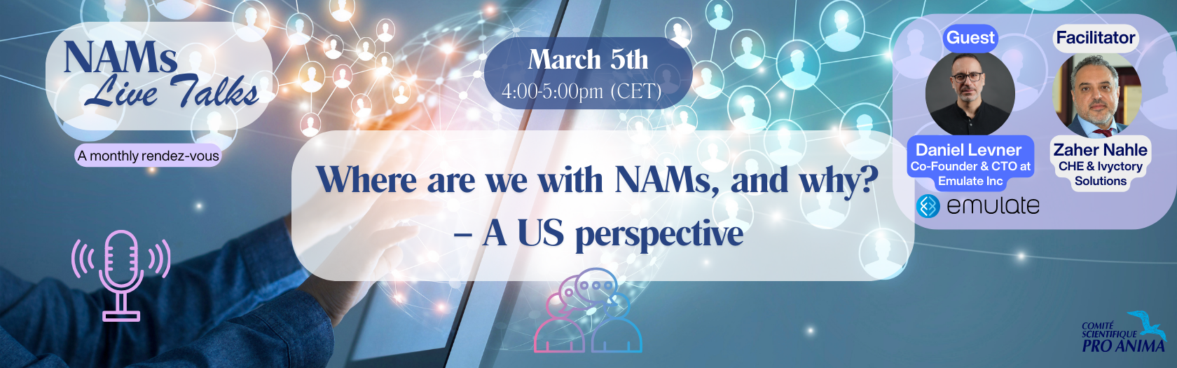Session 2: Where are we with NAMs, and why? – A US perspective, March 5th 4pm-5pm (CET)