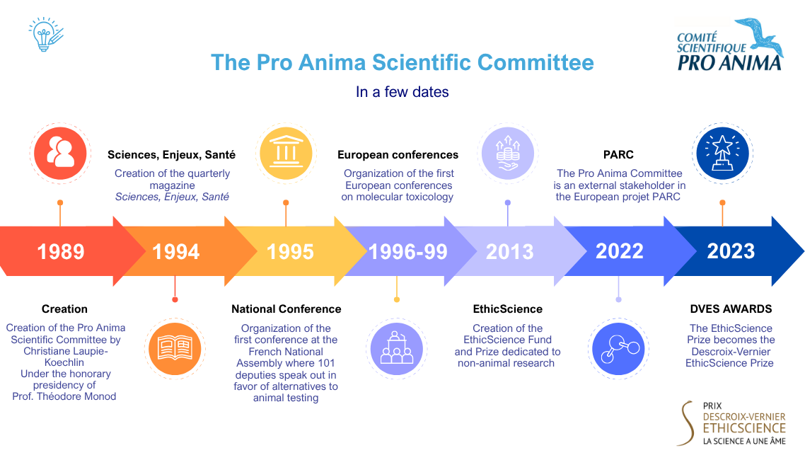 Created in 1989 under the honorary presidency of Professor Théodore Monod, the Scientific Committee Pro Anima is a council of scientists, academics and members of the medical profession, all volunteers, who work with laboratories to develop and promote research programs without experimenting on animals.